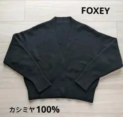 FOXEY カシミヤ100% ロングカーディガン ポケット付き リブ
