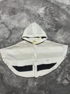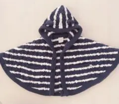 フード付きのストライプデザインポンチョ、70-80サイズ、柔らかい素材で快適。