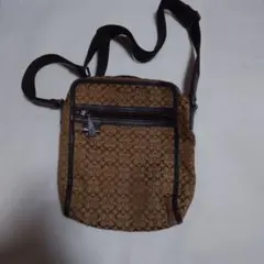 COACHのロゴパターンが特徴のキャンバスショルダーバッグ。