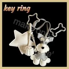【ゆらゆら可愛い】黒×白 犬モチーフ じゃらじゃらキーホルダー バッグチャーム