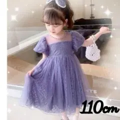 子供用ドレス紫リボン刺繍チュール110結婚式発表会(よ-90)