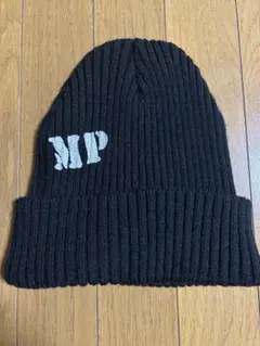 アクリルとポリエステルの混合素材で、シンプルな黒のニット帽。