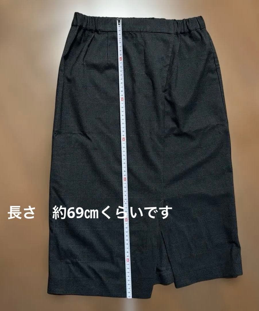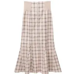 earth music&eology チェック柄のロングスカート、ウエストゴム仕様、前スリットあり。