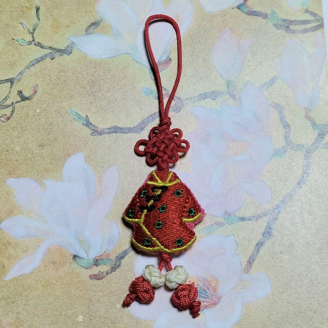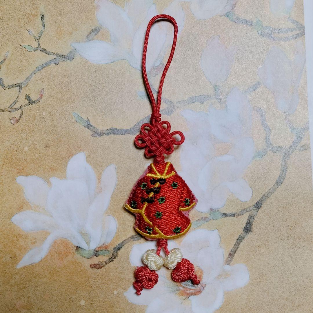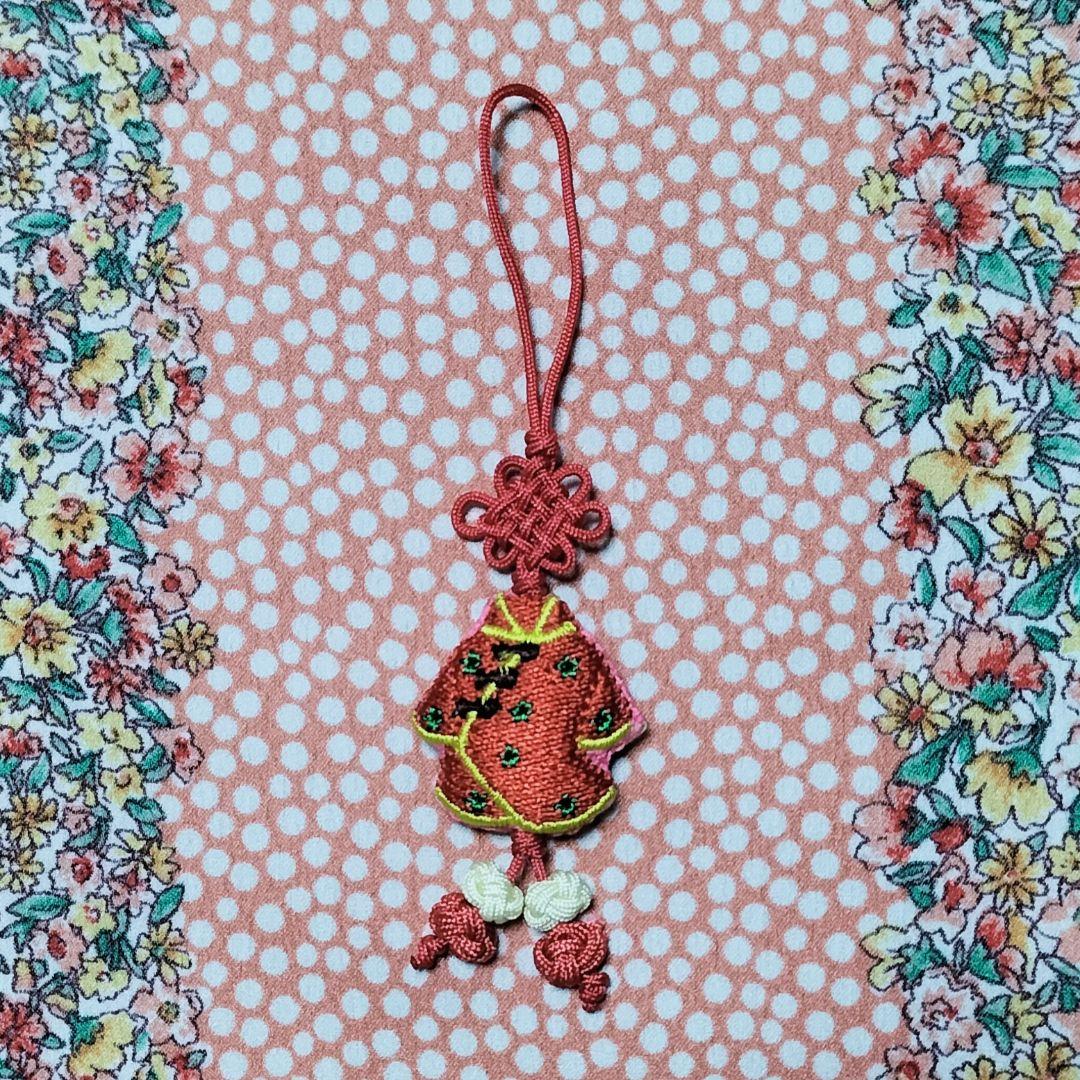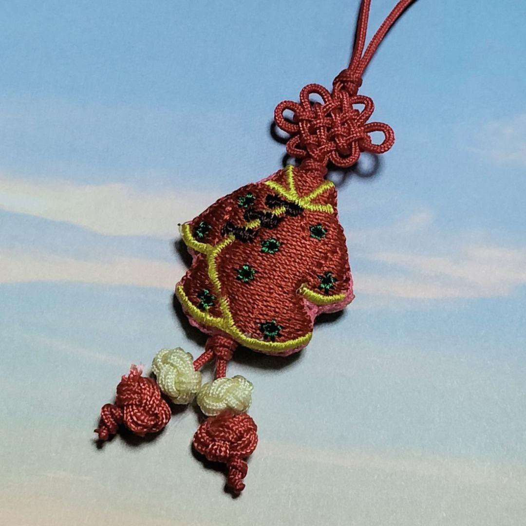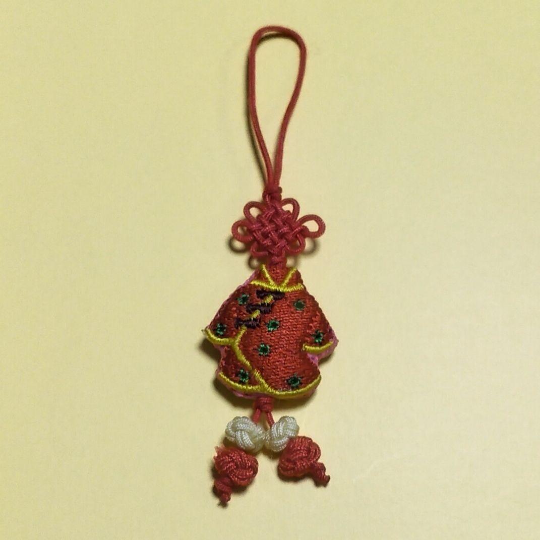 美しい真っ赤な中国結びの編込飾り付き手刺繍の✨中国服チャイナドレス✨の可愛らしいストラップ♡チャームやキーホルダー、キーチャーム、バッグチャームとしても大活躍します!