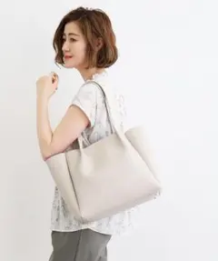 柔らかいファー素材のグレーのトートバッグ、ジッパーポケット付きで使いやすい。