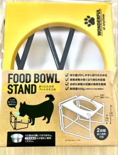 イエローのフードボウルスタンド、2段階調整可能で便利。
