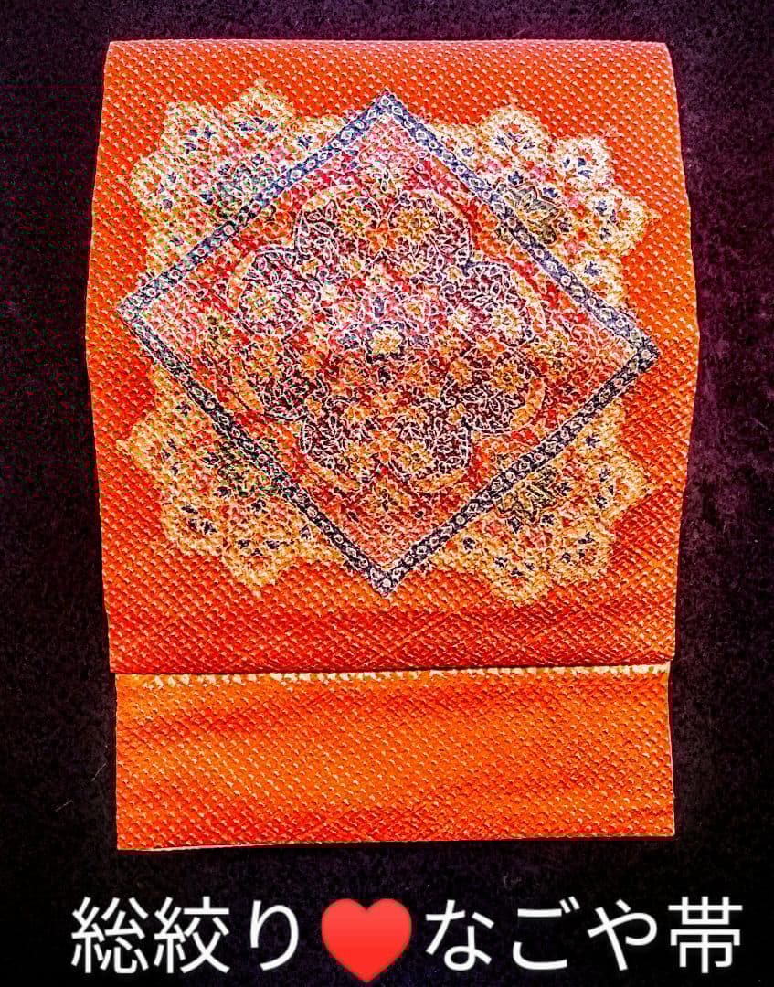 明るいオレンジ地に曼荼羅?の様な華柄*が、華やかで♥ほっこり♡明るく☆可愛い♡帯です。