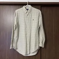 ラルフローレン マドラスチェック長袖シャツ L カスタムフィットイエローグリーン
