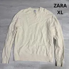 ZARAのメッシュ編みのベージュニットセーター、XLサイズ、長袖、クルーネック。