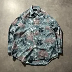 ヴィンテージ L 長袖 総柄 柄 光沢あり 時計柄 アート シャツ