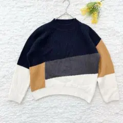 フロント・袖に異なる編み模様が入っており、シンプルながら1枚でおしゃれに決まるデザイン