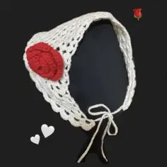 濃いめピンク ヘッドドレス フリル かぎ編み バブーシュカ ハンドメイド