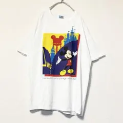 ハロウィンのミッキーと仲間たちのデザインが特徴のXLサイズのブラックTシャツ。
