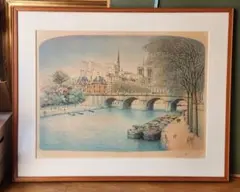 女性と星条旗をテーマにしたモノクロのリトグラフ作品。額寸 35x44センチ