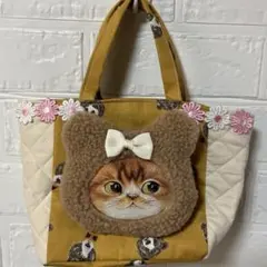 ミモザ マチなしミニトートバッグと巾着ポーチのセット ハンドメイド
