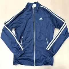 ダークグブルーのストライプ柄adidasジャケット、Lサイズ、トレーニングに最適。