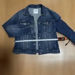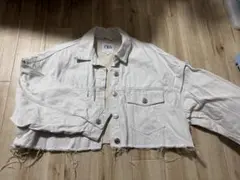 ホワイトのフリンジヘムデニムジャケット、フロントポケット付き。