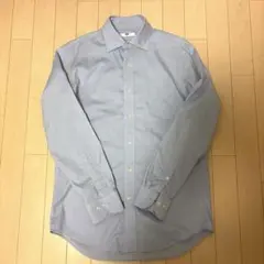 ブロードシャツ UNIQLOブルー&ブラウン系ストライプ L