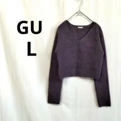 ジーユー 長袖ニット セーター ボーダー ショート丈 (M) 紺 白 カジュアル