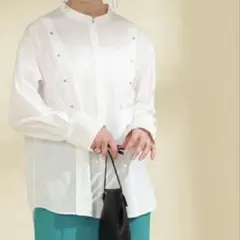 胸元のシャーリングがアクセントになっており、ふんわり広がるシルエットが女性らしい一枚です。