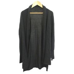ボタン付きのグレー長袖カーディガン、ゆったりしたフィットで快適な着心地。