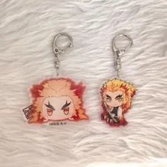 煉獄杏寿郎のアクリルキーホルダー、六角形デザインでイラスト付き。