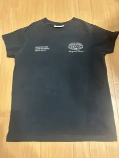 VネックデザインのブラックTシャツ、クラウンモチーフが特徴。