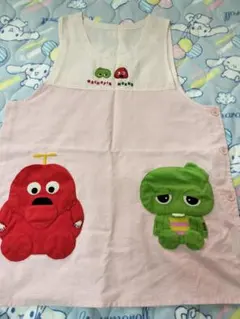 フェルト部分は少し毛玉になっていたり、プリント部分が薄くなっていたりします。ピンクの方のエプロンは蛍光ペンの跡がついてしまっていますが、着てみるとあまり目立ちません。