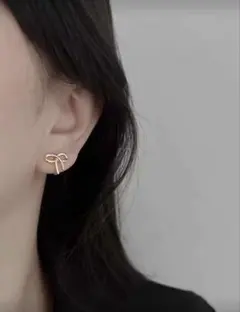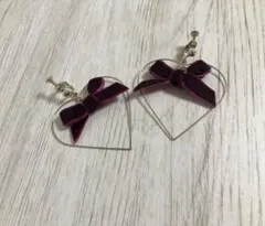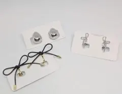 ハート型リボン付きイヤリングとハートのカラーストーンシルバーイヤリングセット