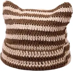 4色ネコ耳ニット帽 猫耳ニット帽 手編みニット帽 ハンドメイド 帽子