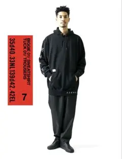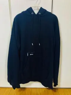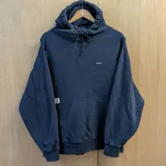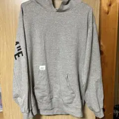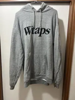 WTAPSのダークグレーのフード付きパーカー、フロントロゴが特徴的。