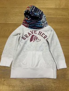 デニムダンガリー ライトグレーパーカー フロントバックプリント 130㌢