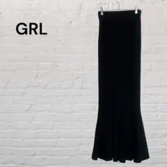 【麻混】GRL マーメイド ロングスカート M ブラック 裏地あり 美シルエット