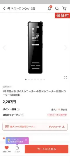 当商品はライターより小さく、10円玉2枚より軽いのでバレずにさりげなく録音できます。