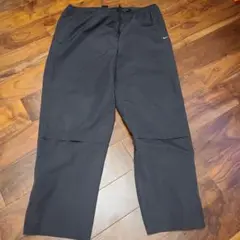 コーデュロイ素材の黒いカーゴパンツ、刺繍ロゴ付き。