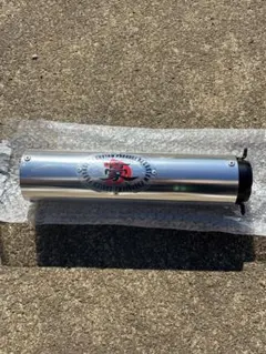 アルミ製のバイク用マフラー、ボルト式取り付け。