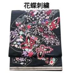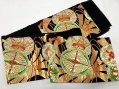 アンティーク 黒地に扇模様の袋帯 着物 104w