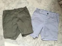 ベージュのコーデュロイパンツ、サイドポケット付き、ゴムウエストで快適な着用感。