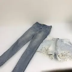 ダメージ加工が施されたライトブルーデニムパンツです。