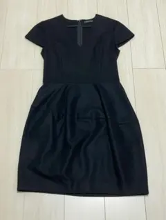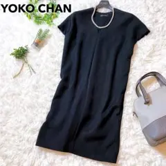 ヨーコチャン フリル袖ワンピース フレンチスリーブ ロング丈 ブラック S