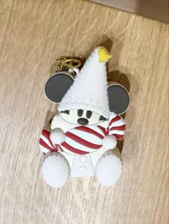 ミッキーマウスの帽子とマフラー付きストラップ。