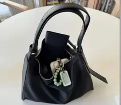 レザー風のバケツ型ショルダーバッグ、ブラック。