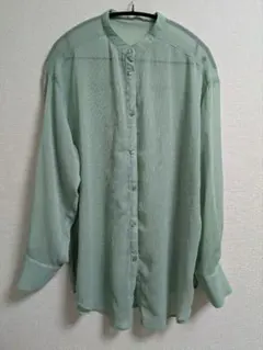 ミントグリーンの長袖シャツ、軽やかな素材で春夏に最適。