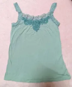 アクシーズファムのリボン付きストラップとフリルデザインのカジュアルな黒のキャミソール。