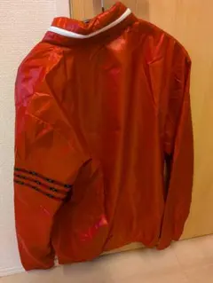 赤と紺の配色が特徴的なadidasのジップアップナイロンジャケット。