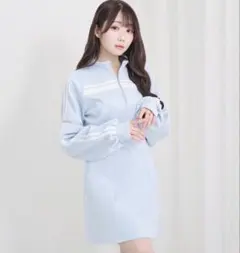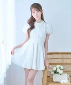 フェミニンなシルエットながらもストライプ柄のコットンレースがスッキリ