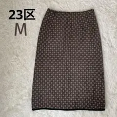 23区のリボン付きのネイビースカート、カジュアルなデザインでポケットもあり、コットン混合素材。