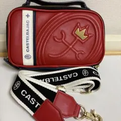 CASTELBAJACのロゴが特徴的なナイロン製ショルダーバッグ、ブラックとレッドのコンビネーションがスタイリッシュ。