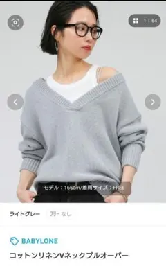 BABYLONE バビロン Vネックニット 長袖 リネンシルク混 フリー