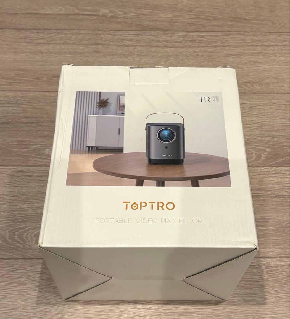 スタイリッシュなデザインで、持ち運びに便利なハンドル付きの小型プロジェクターです。